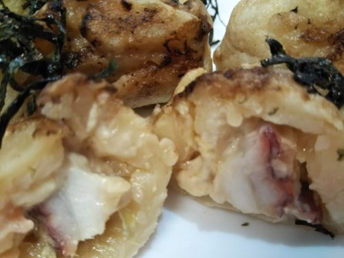 手作りのキムチ、北海道産のタコ、自家製のオリジナルエキスを使って作っているのだとか。生地には、熊本県産の粉を使用しています。