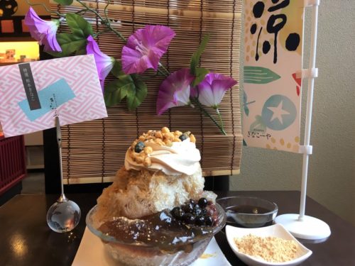 自分できな粉と黒みつをかけながら食べることができるのも魅力です。グラノーラのサクサク感に、ふわっとしたきな粉クリーム、とろとろのわらびもちなど、一杯でいろんな味と食感が楽しめます。食べている間ずっと楽しめて、おいしいかき氷です。こちらのかき氷は7月末迄の提供となり、8月からは、また新たなかき氷が出るとか。こちらも楽しみです。
