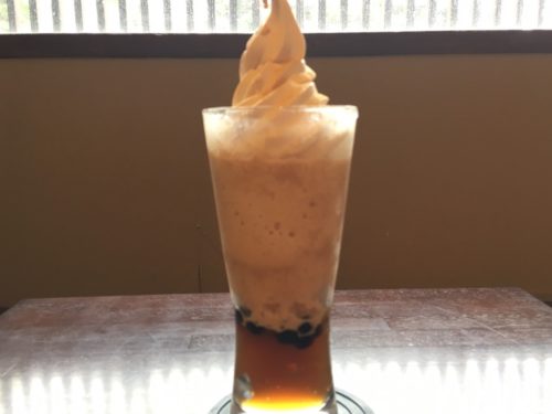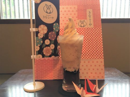 カフェメニューは多数ありますが、中でもおすすめなのが、濃厚きな粉ラテタピオカわらびもちソフトクリームフロート。