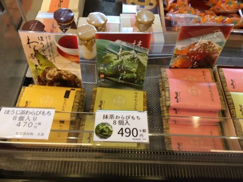 お店の主力商品わらびもちに、中田英寿氏も絶賛したというプリン、おはぎやみたらしだんごにギフト用のお菓子など、たくさんの和菓子が並んでいます。ちなみに、「きなこーや」の「ー」は、わらびもちの伸びを表しているそうです。