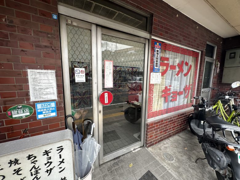 ガラスに描かれたラーメン・ぎょうざの文字や入り口ドアの丸い部分もエモいです。