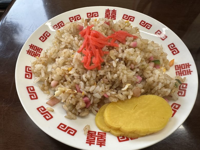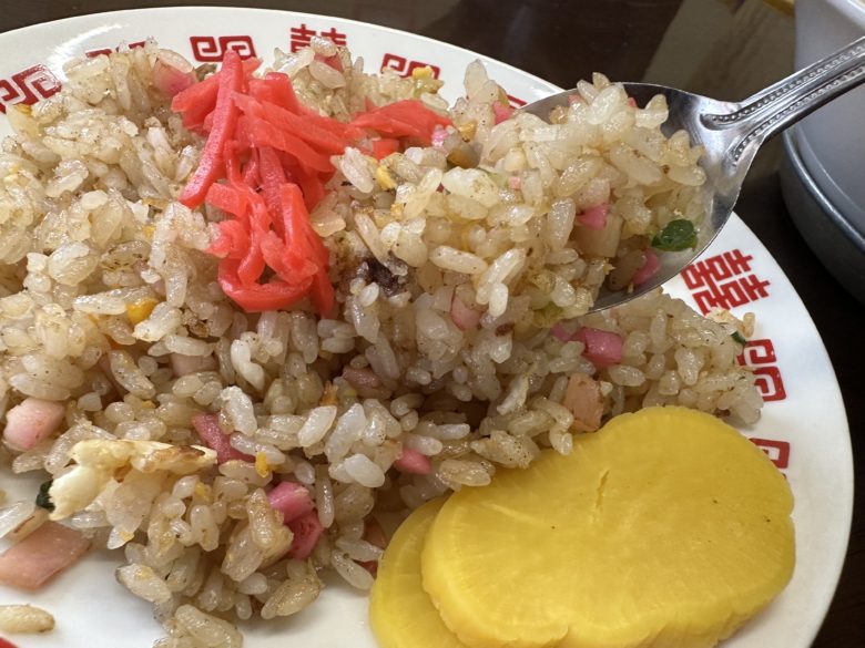 ハンチャーハンは紅ショウガとたくあんが付いています。