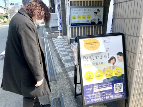 「2/1に黒髪にオープンした20分3,500円の個室セルフ脱毛『キングスサロン 熊本大学前店』が個人的にすごく気になるので取材を申し込んだんですけど、俺がめっちゃ脱毛してるところの写真撮ってもらっていいですか?」