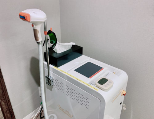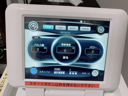 機械の操作をするのは1箇所だけ。必要な設定がなされた上で「スタンバイ」モードになっているので、「スタート」を押せば脱毛ができます。