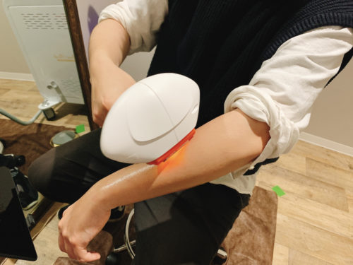 ジェルを塗り、試しに照射。問題なさそうなら、いよいよセルフ脱毛開始です。