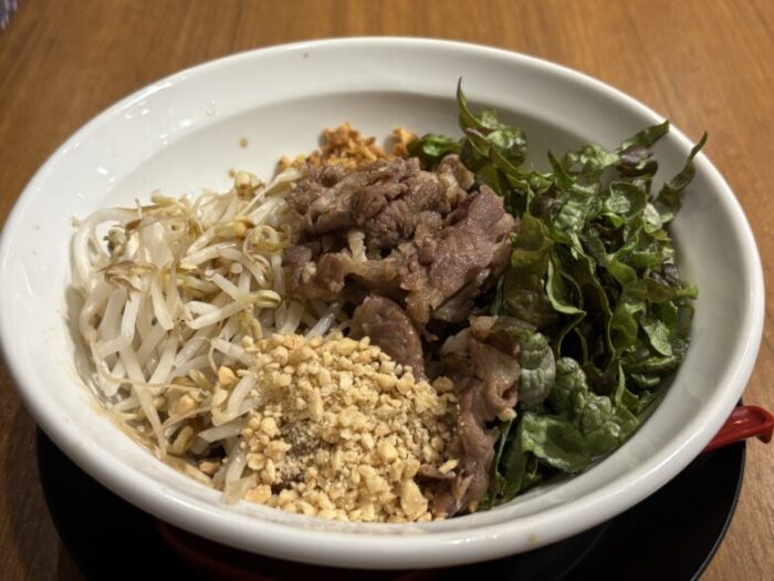 豊富なメニューの中からいただいのは、混ぜフォー(ベトナム油そば)。