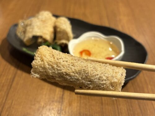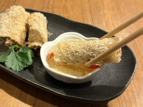 揚げ春巻きは網状になった皮にお肉が包まれています。