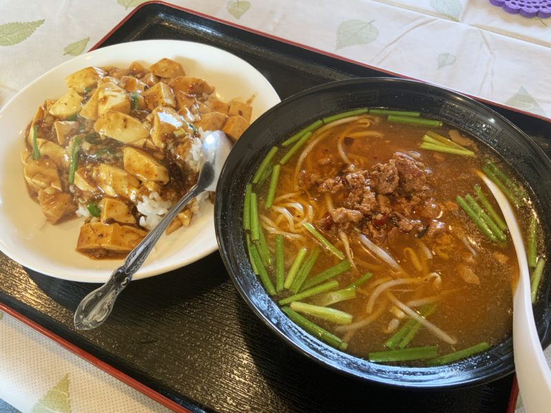 こちらが台湾ラーメンセット!ご飯は麻婆豆腐丼です。