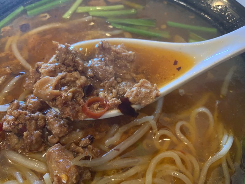 なにより嬉しいのが肉の量。レンゲに乗り切らないほどの量。