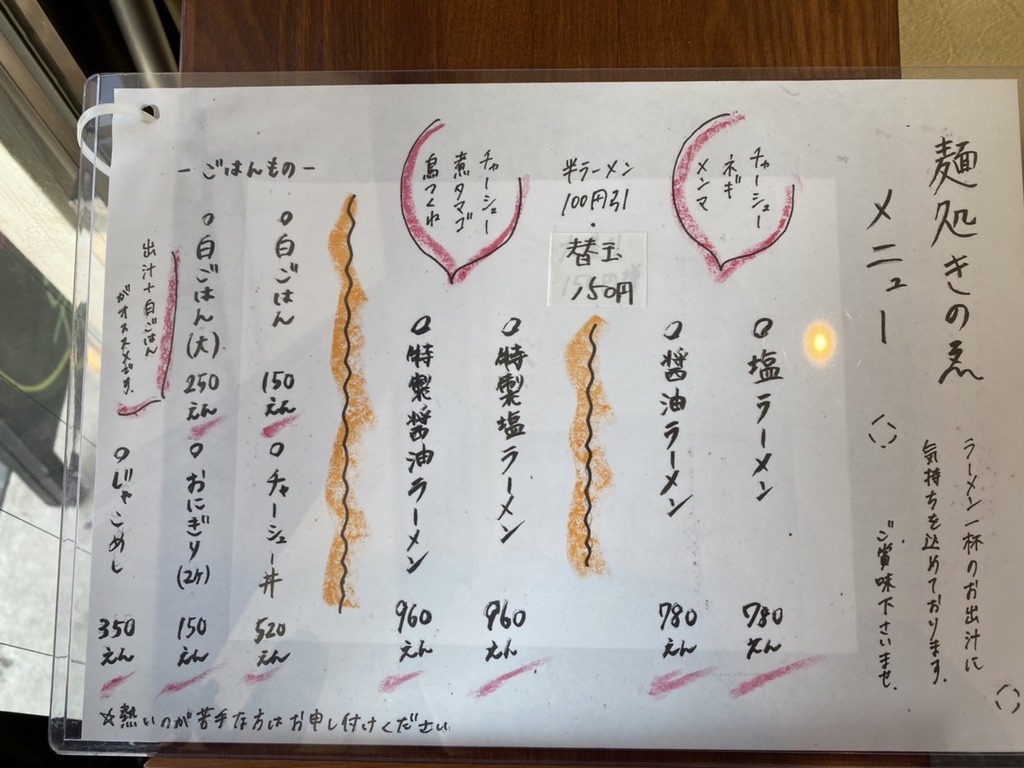 看板には、醤油と塩らぁめん。どっちにするか入る前から悩む…。