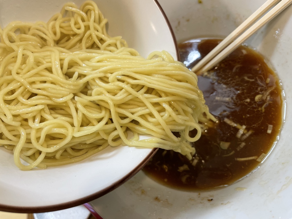 麺は、太め。だから、出汁の味をぎゅっと吸い込んでくれてます。