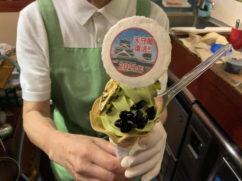 熊本城の昭君の間をイメージしているそうです。現在、入園することはできませんが、もうこのソフトクリームがあれば我慢できる気がしてきます。