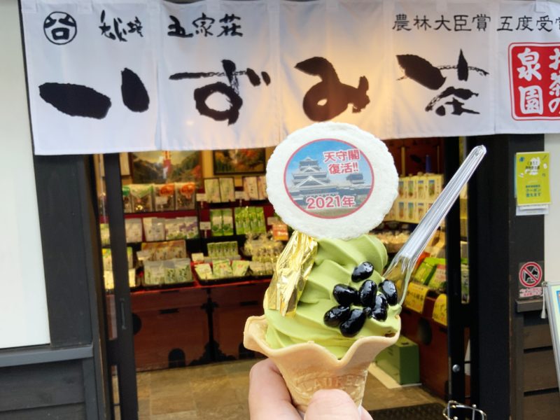 ということで、城彩苑「お茶の泉園」で金箔ソフトクリームを食べてきました。