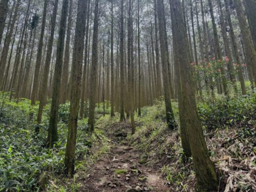 木々はどこまでも高く伸びているよう。汗ばむほどに天気の良い日でしたが、陽の光はここへはわずかにしか届かず、その閉鎖された感じに胸がどきどきとします。