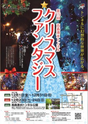 ウォーターパールで有名な高森湧水トンネルは、この時期ですとクリスマスファンタジーというイベントが行われトンネル内にある、いくつものツリーやイルミネーションで幻想的な空間を味わえます。