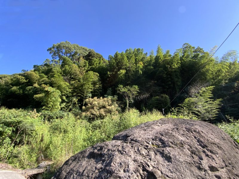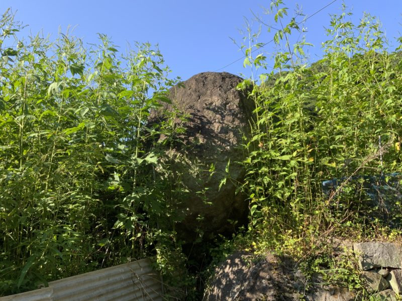 近くにいたおじいちゃんに話を聞いたところ、岩の向こうの竹やぶになっている山の上に今ではあまり人も立ち入らいないような場所に観音様がいるそうで、そこにあった岩石。