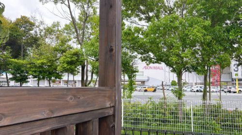 建物の裏からはイオンモール熊本が見えます!…がイオンモール熊本側からは入れないので注意しましょう。