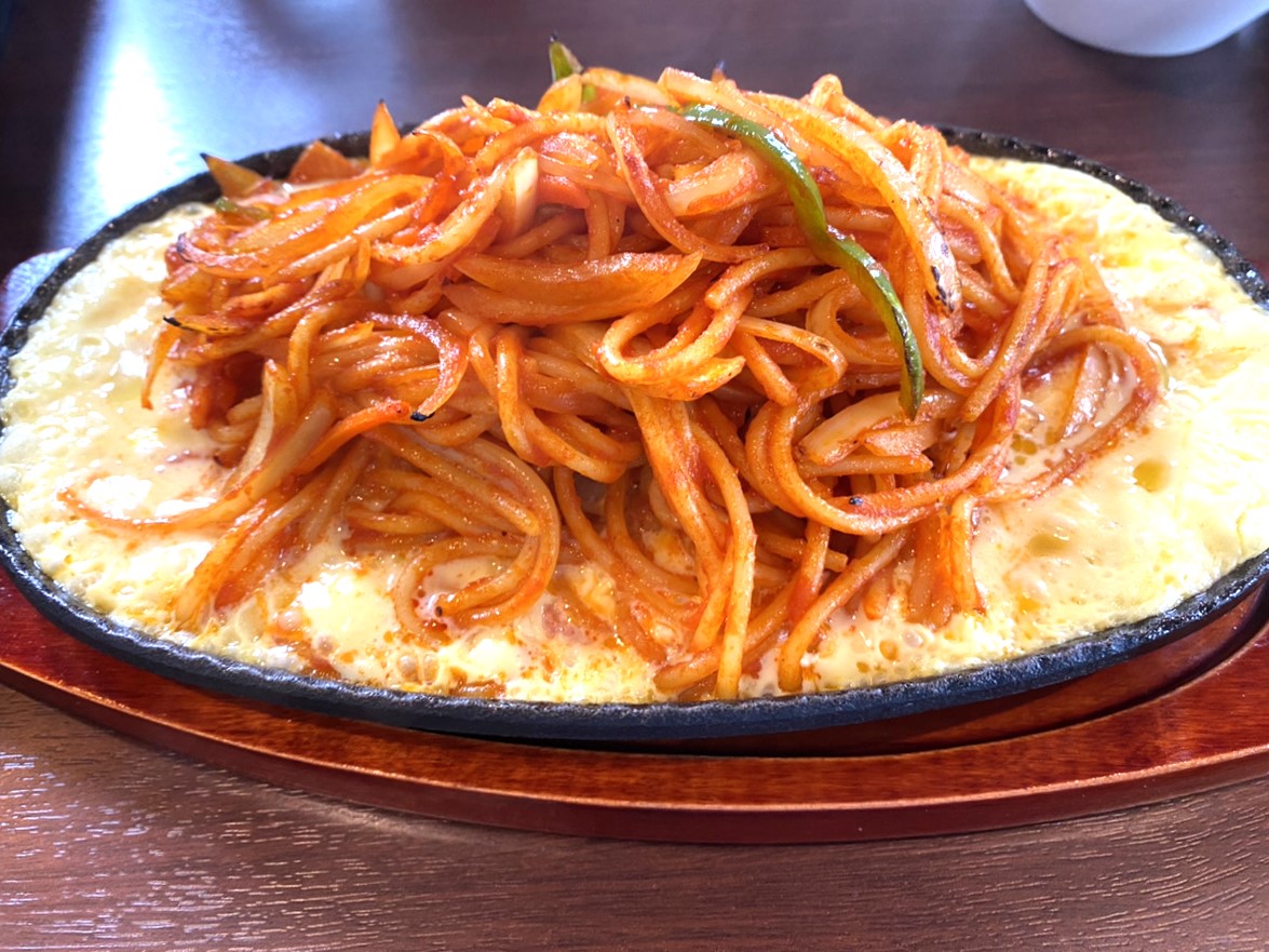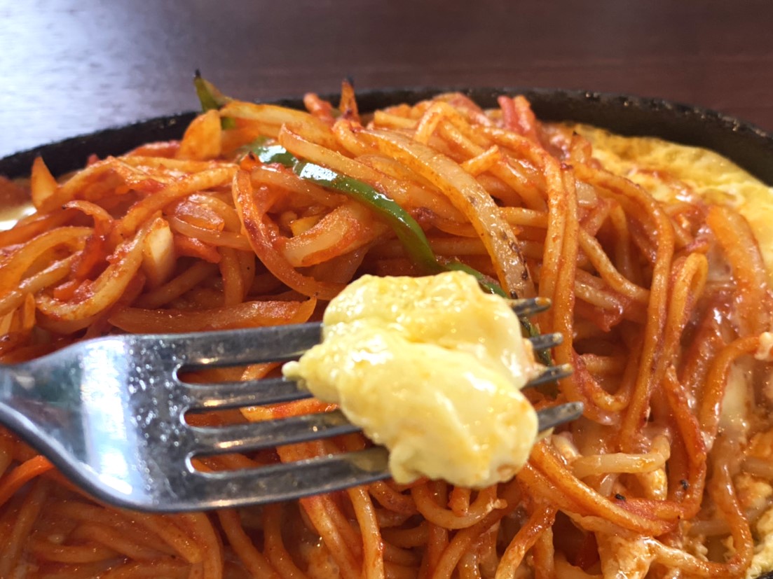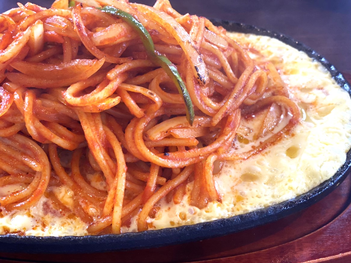 ジュージューと熱くなった鉄板の上には、ふわふわのたまご!そしてたっぷりのケチャップに絡まったスパゲッティー。これこれ。