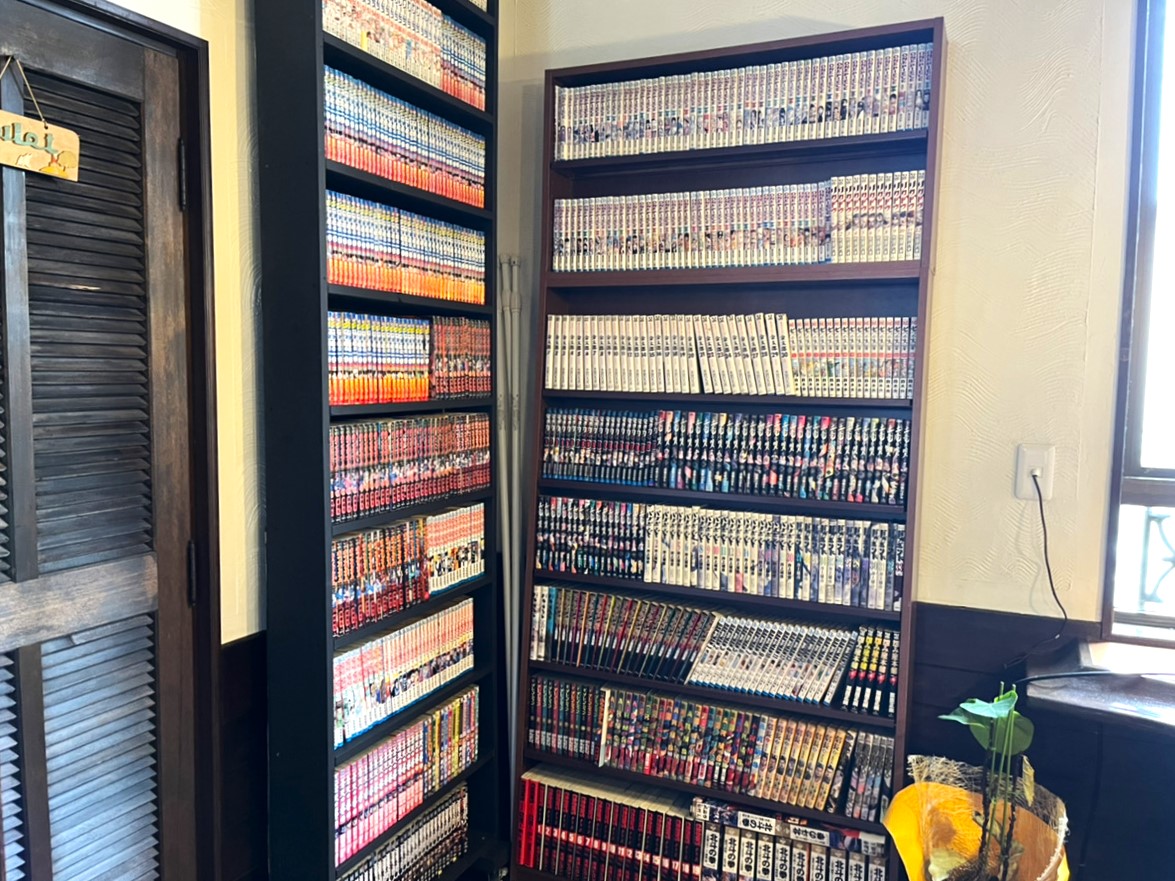 棚にずらりと並んだ漫画も懐かしさを覚えます。