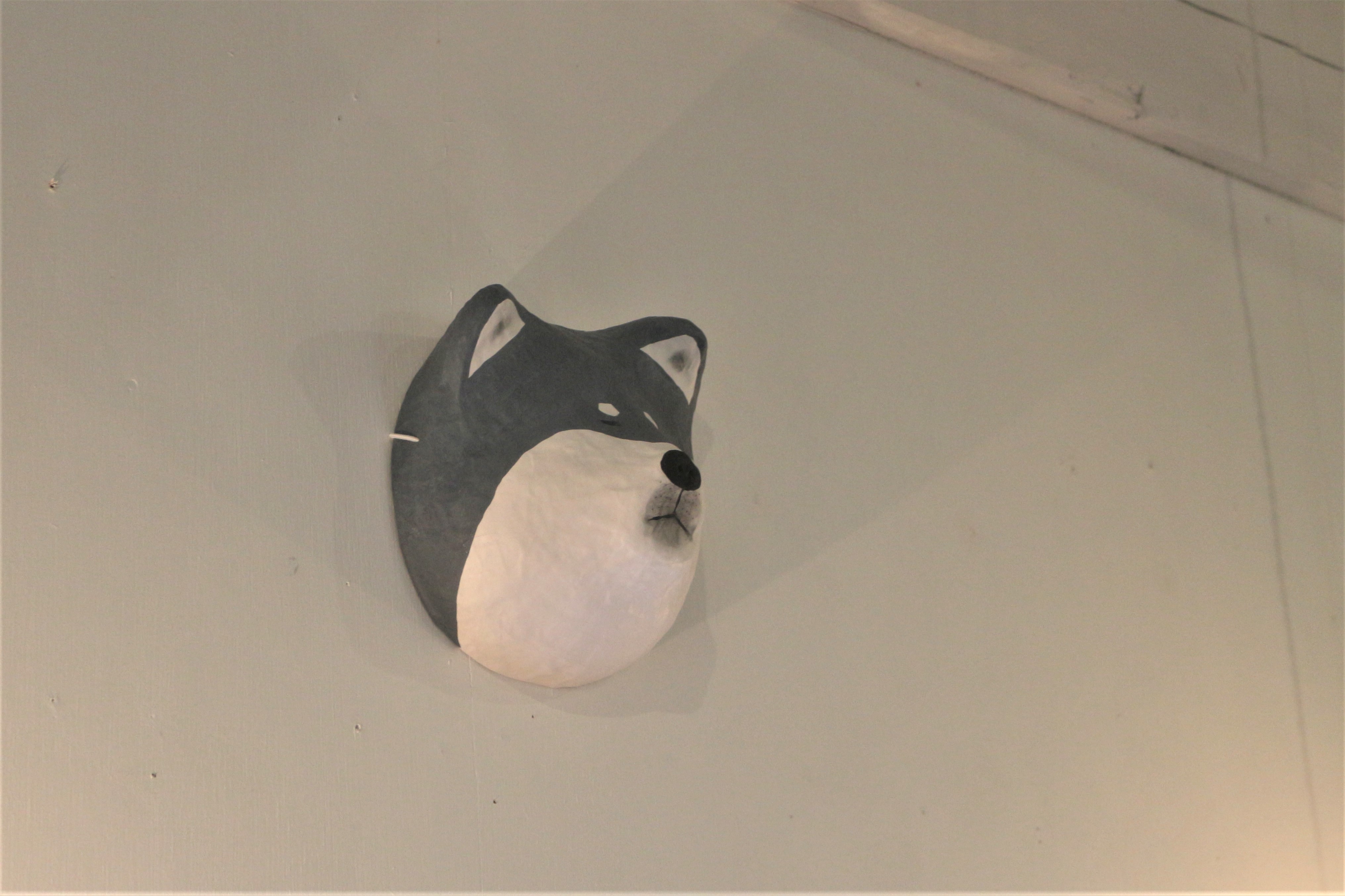 店内には壁にはいくつもの木彫りが。