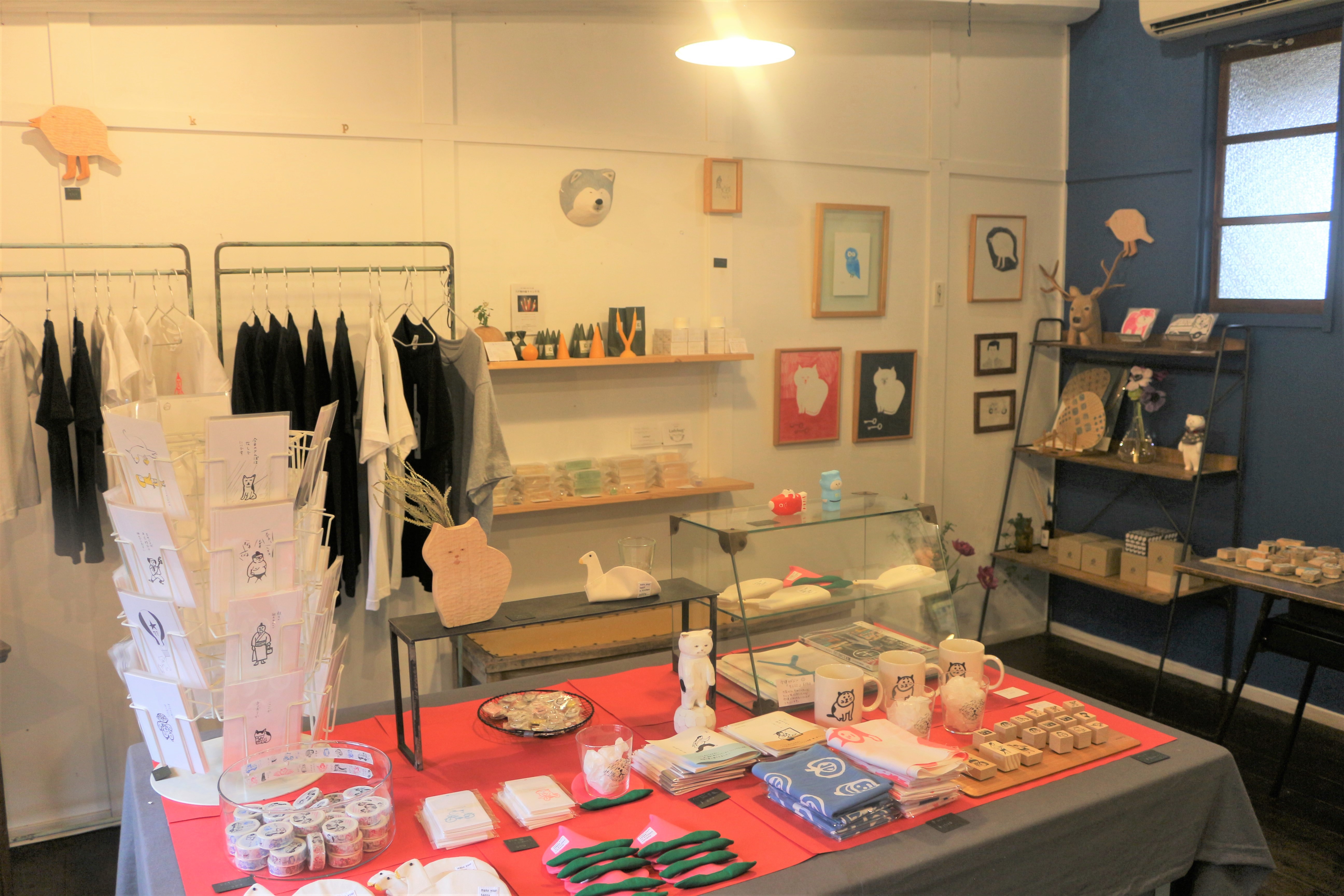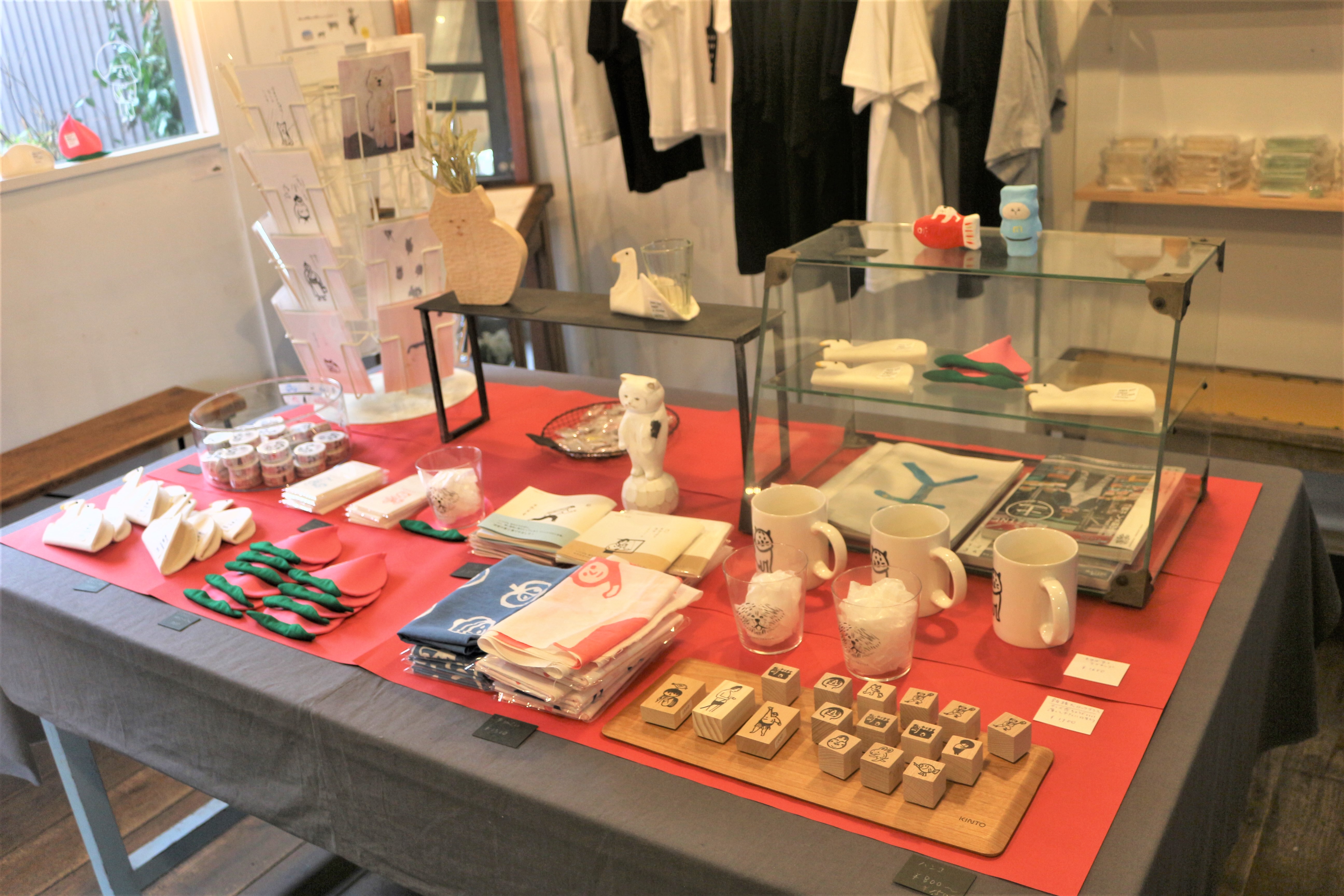 他にも、マグカップやグラス、手ぬぐい、マスキングテープやTシャツなど色んなグッズが並んでいます。