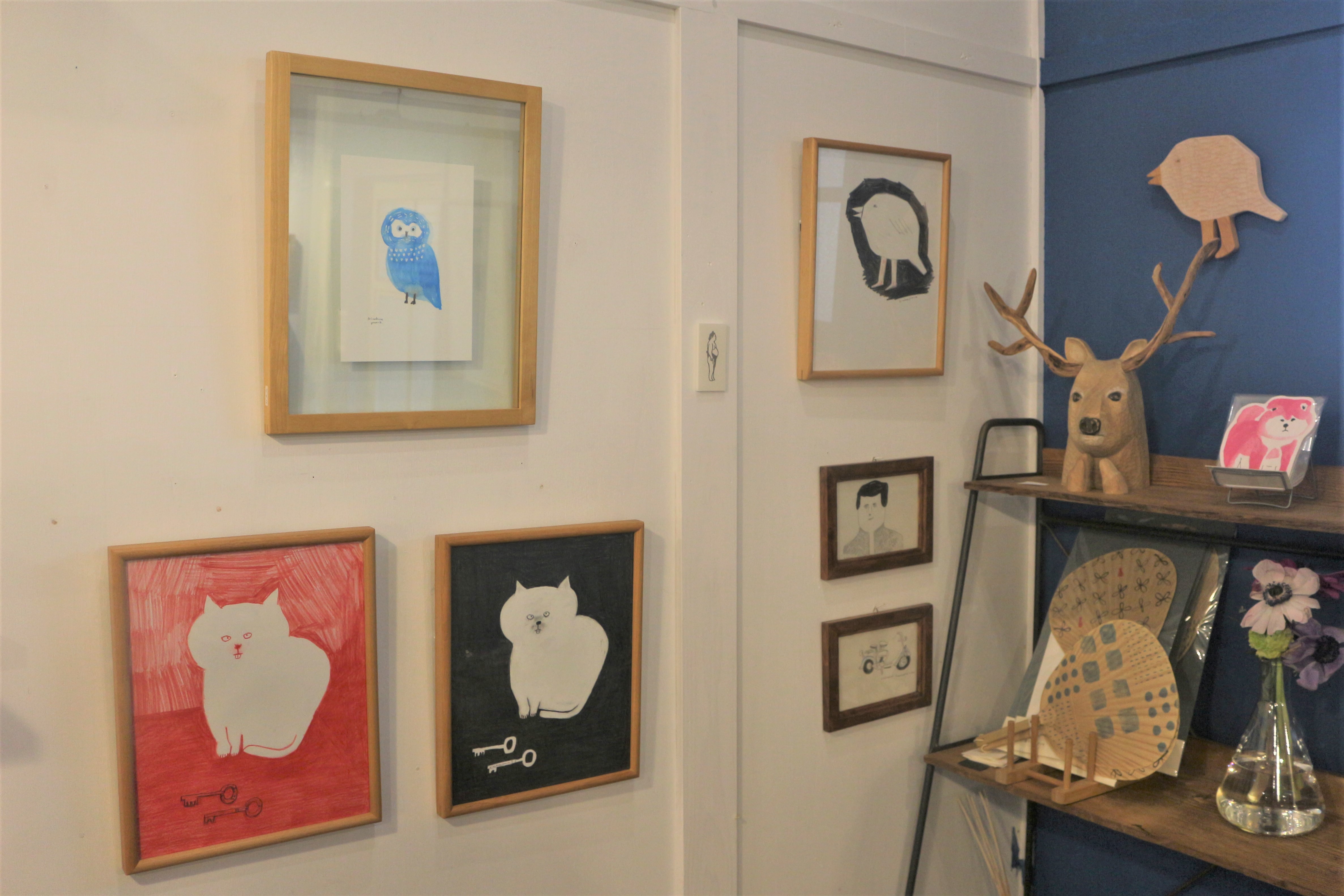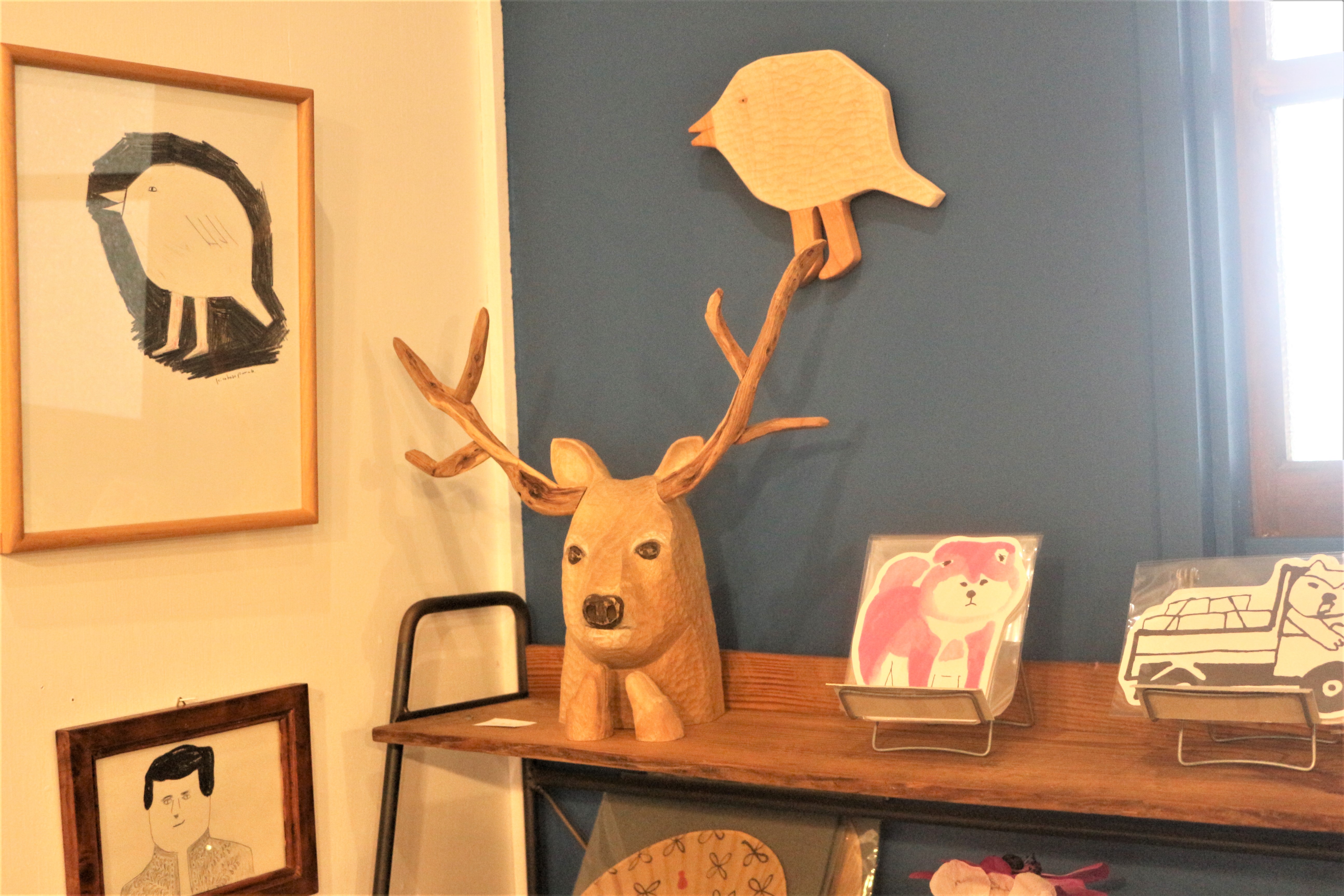 右側の棚のポストカードも持って帰って!って言わんばかり。可愛い。