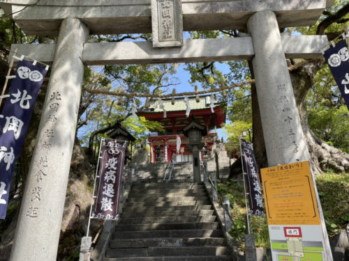 北岡神社は承平4(934)年に二本木で創建され、花岡山の山上に移ったのちに正保4年(1647年)、現在の場所へ遷座しました。