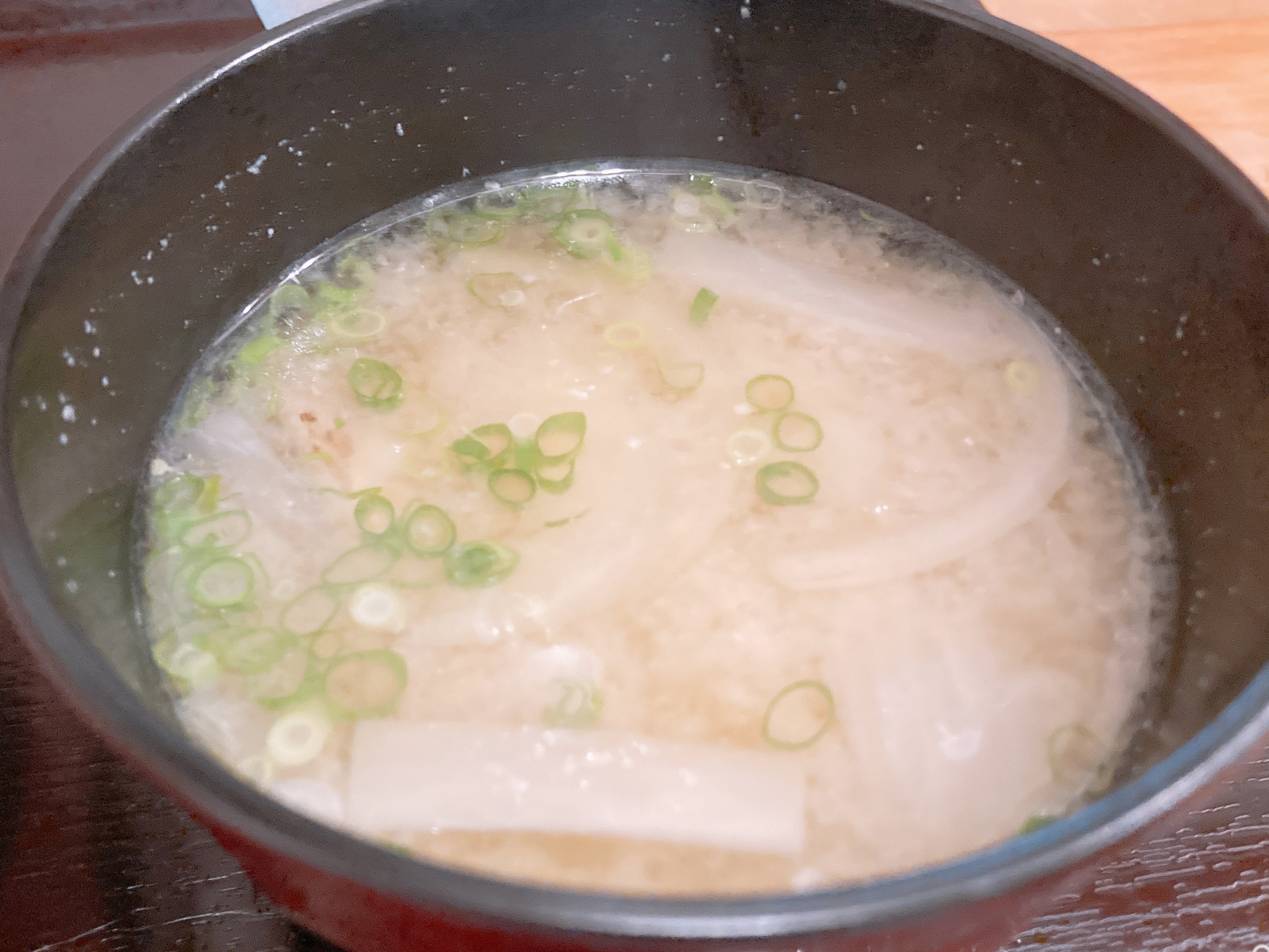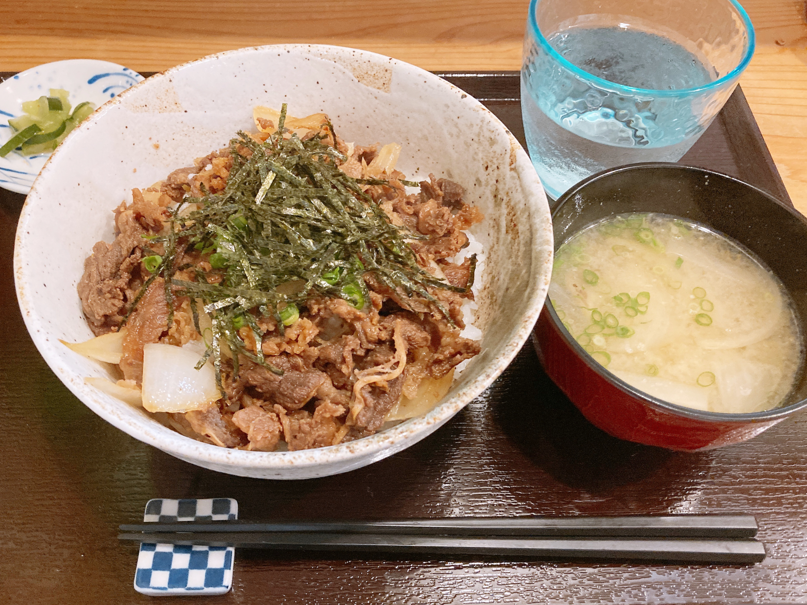 「単品でいいですかー?」という店員さんの声とは裏腹に、手作りのお味噌汁が付いていました。嬉しい。