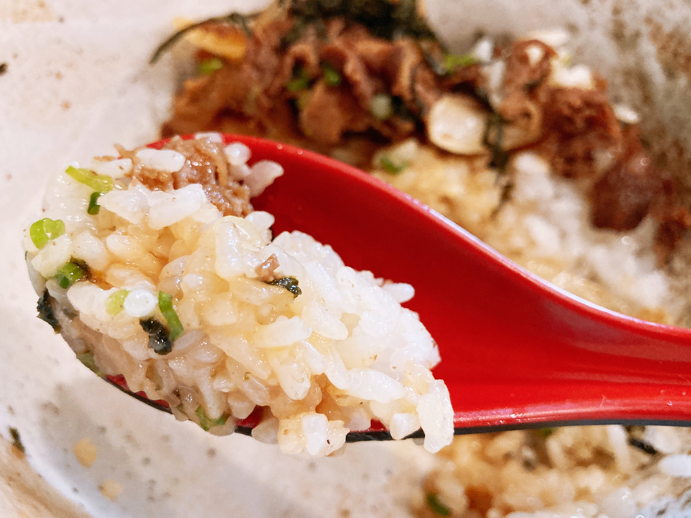 そして、甘辛いタレのお肉。これがご飯に合うんです。