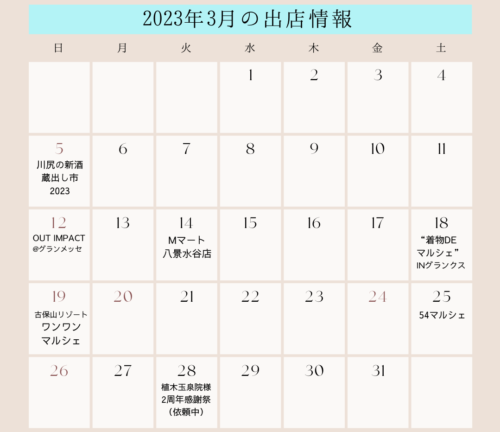 そんな「Kitchen Bruna」の今月のスケジュールがこちらです。