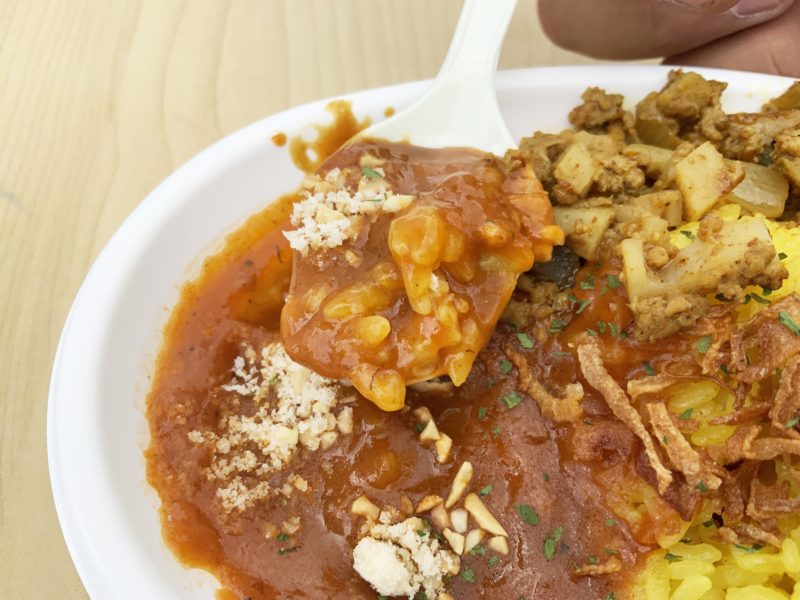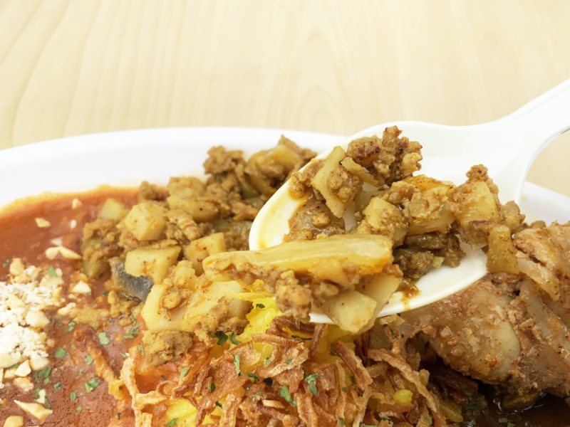そして真ん中にキーマとタンドリーチキンがトッピングされています。