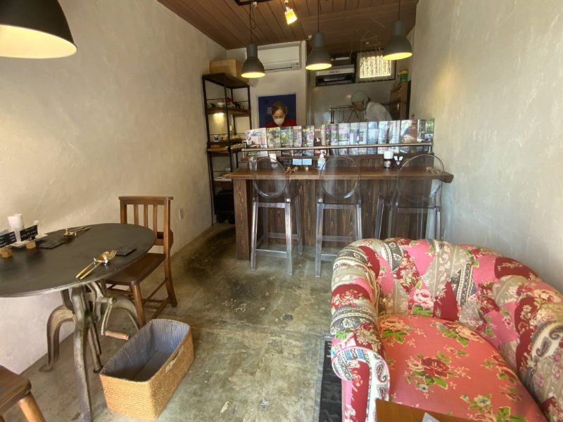 店内は2人がけのテーブル席と1人がけのソファ席、そしてカウンター3席と席は少なめ、一応、裏にももう1部屋あるそうです。