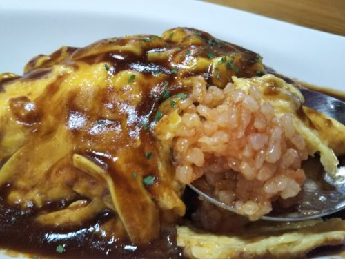 「んーーーーっ!」とうなりたくなるほどの絶品です。かつ、家庭的な風味が。すべての食材が優しい味に調理されていて、子どもから大人まで多くの人から愛されそうなオムライスです。