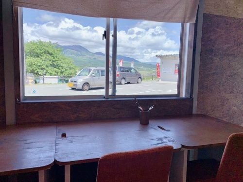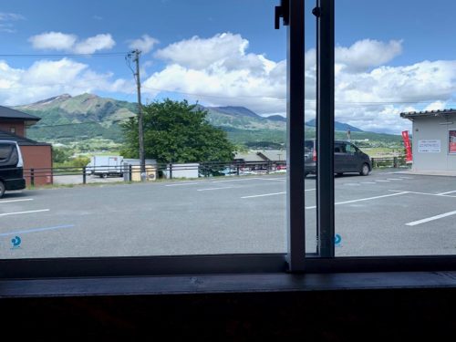 キッチンボルケーノ(ボルケーノ=火山)という名前だけあって、窓辺に座ると、目の前には阿蘇五岳の美しい眺望!