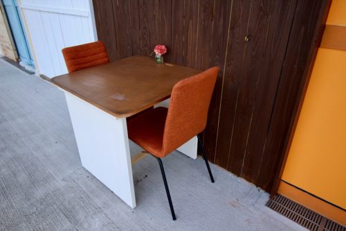 愛犬家の皆様はぜひ屋外のテーブル席へどうぞ。壁面にはリードを引っ掛けられるフックがついています!