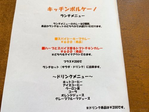 ランチタイムのメニューは2種類!どちらのカレーも600円