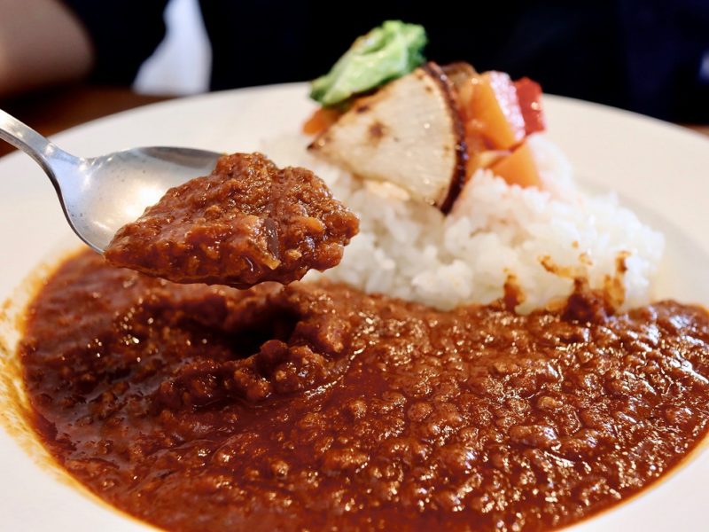 スパイシーと言っても辛みはそれほど強くなく、挽肉の旨味がしっかり閉じ込められた味わい。辛いカレーが苦手な人でも最後までおいしく完食できそうです。