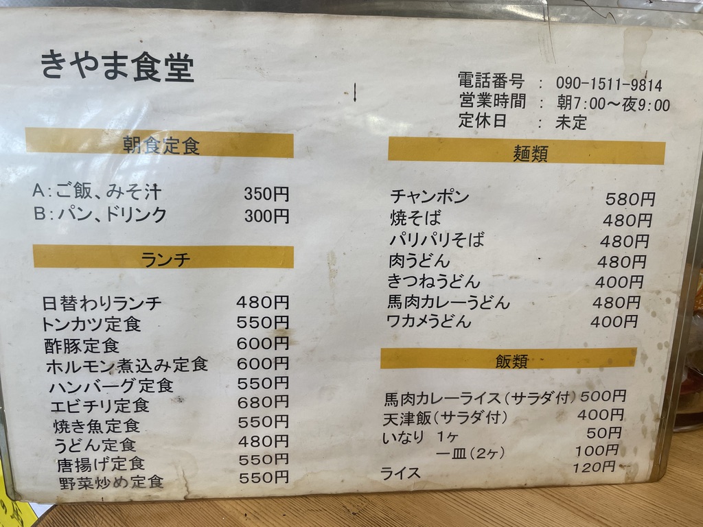 3拍子揃ったお店です「きやま食堂」、よかお店です。ちなみに