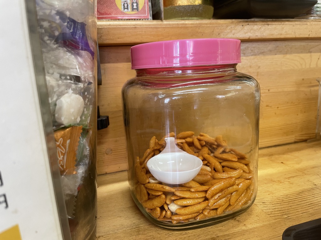 柿の種が置いてあり、ご自由にどうぞ。