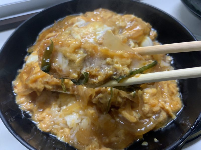 まるでたまごかけご飯の上にカツとじが乗っているかのよう