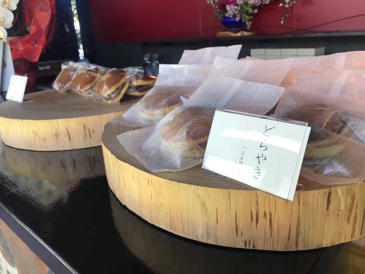 奥のどら焼きはホクホクでビニールが曇って、買わずにはいれない風貌をしておりました。