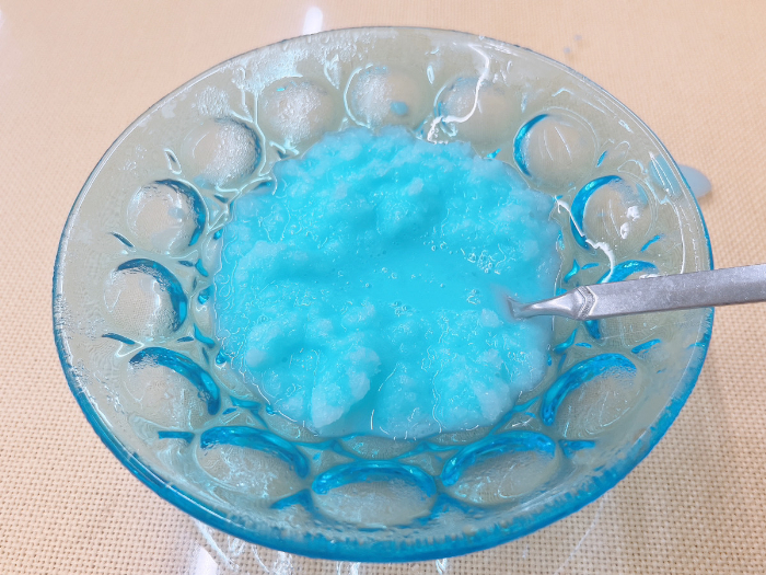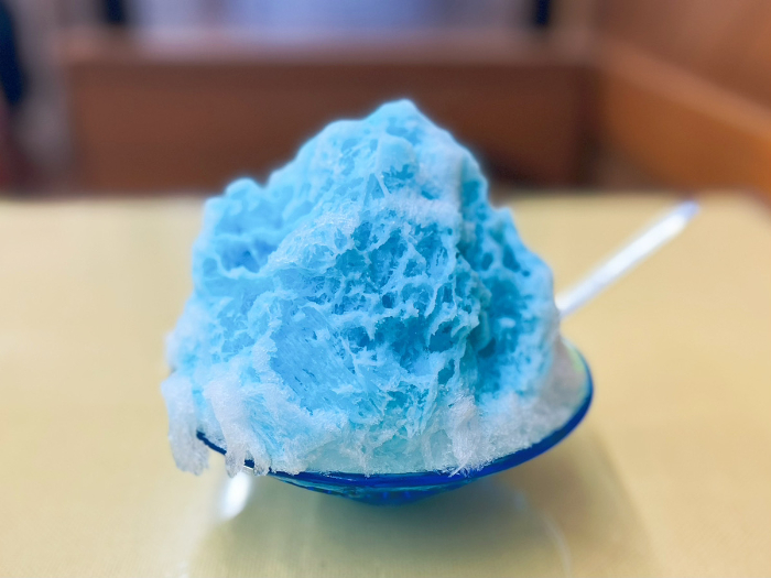 この鮮やかな水色(エメラルドグリーン?)のかき氷を見ると、夏が来たんだなぁと実感します。