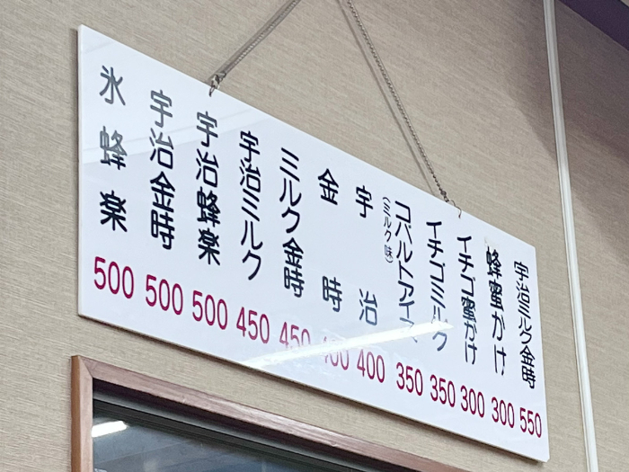 こちらがかき氷のメニュー。このご時世に、お店のかき氷が300円で食べられるって安すぎですよね。