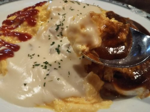 優しい味のデミグラスソースと、トロトロでふんわりとした食感の半熟卵が絶妙!