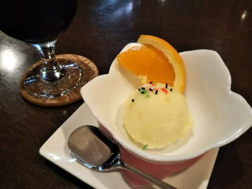 「神戸オムライスセット」を注文した場合は、ミニサラダに加えて、プチデザートとドリンクがついてきますよ。