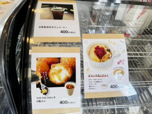 こちらも美味しそう、コロコロコロッケ(チーズ入り)400円。おやつにも良さげな、アツアツメニューです。