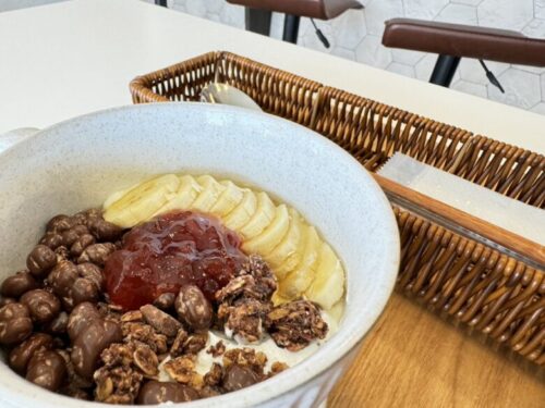 電車を降りて駅を出たら3秒でたどり着く小さなカフェで、朝ご飯として世界的に人気の”グリークヨーグルト”を食べてきました。