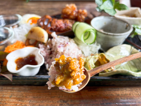 野菜プレートに入っているごはんと一緒に頂くと最高。