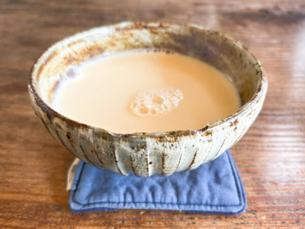 食後のドリンクにはくろみつ豆乳をいただきました。