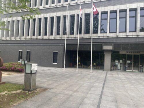 市電「市立体育館前」を降りて徒歩5分。熊本県立図書館を正面に見て、左の小道に進みます。